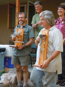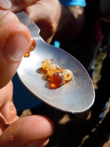 Some collegues from ant course show off their preserved ant tunnels.